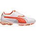 Puma TitanTour Mens Golf Shoes - White/OrangeTo develop a golf shoe with otherworldly capabilities, Puma borrowed material innovations from space travel like Outlast Technology for temperature regulation and Shapelock memory foam internal construction for a customized fit. Think of it as ultimate ground control – in classic black and white leather. Features: