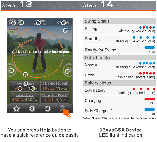 Small enough to be attached to the end of a golf club, the lightweight, battery-operated 3Bays GSA Pro Golf Swing Analyzer captures more than 10,000 data points for each of a user's golf club swing. The data would be transferred to one's mobile device for instant animated review of the swing. The information could also be sent to remote coaches for online coaching.