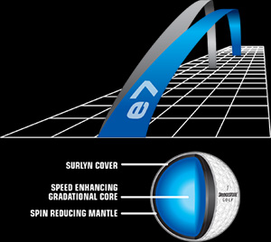 Bridgestone e7 Golf Balls (1 Dozen)Faster and longer shots are the name of the game. When misses left or right are not an issue, play the e7 for maximum speed and distance. The newly engineered WEB Dimple enhances surface coverage for improved ball flight for more distance.
