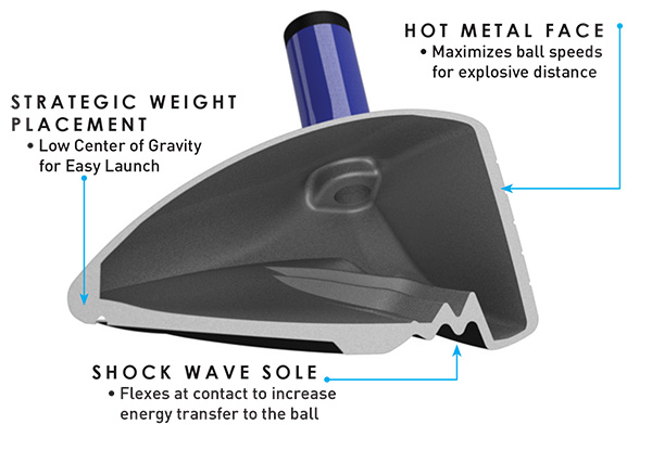 • Shock Wave sole: Enables entire head to flex for increased ball speeds