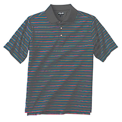 Ping Rainmaker Polo *Multi stripe polo with texture venting. *Contrast PING embroidery on right sleeve and Mr.PING at hem. *P3 fabric technology. *100% Performance Polyester. |