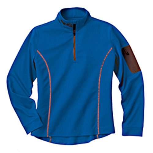 Contrast cover stitch at princess seams and PING heat seal on collar
