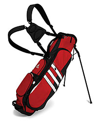 Adidas University Stand Bag Features • Ultimate lightweight carry bag - sub 4 lbs • Lightweight 420 denier hexstop nylon construction • Four way top with full-length shaft dividers • Five pockets include full-length side storage and valuables pockets • Water bottle sleeve • Integrated pen slot and scorecard holder • New ultra-light stand and base system • Anatomically correct strap system • Available in single or double strap • Rainhood |