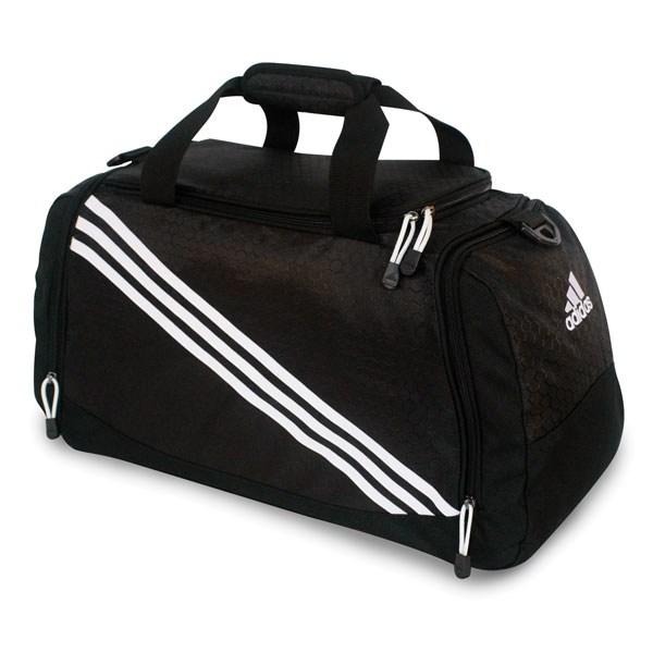 Adidas University Weekend Tote Features • 600 dobby hex weave nylon • Four exterior pockets and interior zippered valuables pocket • Internal zippered compartment • Removable padded shoulder strap • 14.0 in. x 9.5 in.. x 10.0 in. |