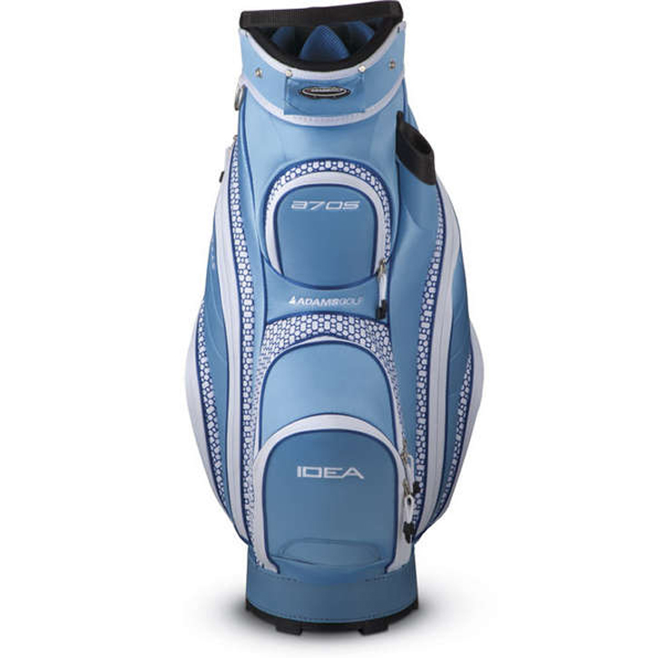 2013 Adams Regatta Cart Bag Cart bag with 14-way top and an integrated putter tube. Lots of storage options, including seven pockets, with a hidden valuables and ball compartment. Cart strap and trunk handles make for easy toting from trunk to cart. |