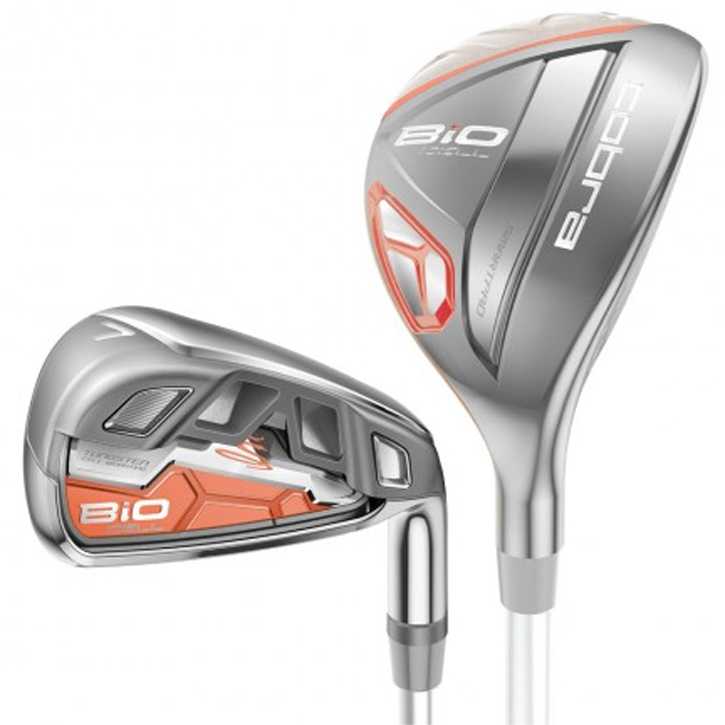 Cobra Bio Cell Womens Combo Iron Set - PearlTungsten-Fueled Distance and Forgiveness. The Women's BiO CELL Irons Combo set feature tungsten-fueled irons with easy to hit hybrids to maximize distance and forgiveness. The Women's BiO CELL Irons are packed with game changing technology, making them one of the best looking irons in golf. Equipped with tungsten weighted cells that are strategically positioned at the heel and toe to increase the MOI for a faster face and more forgiving long iron. The BiO CELL Hybrids are equipped with MyFly8 with SmartPad™ technology featuring 8 loft options with simple adjustability to maximize distance and optimize yardage gaps. The BiO CELL Irons combined with two BiO CELL Hybrids (4-5H, 5-6H) is the perfect set for optimal distance gapping, maximum distance and forgiveness.