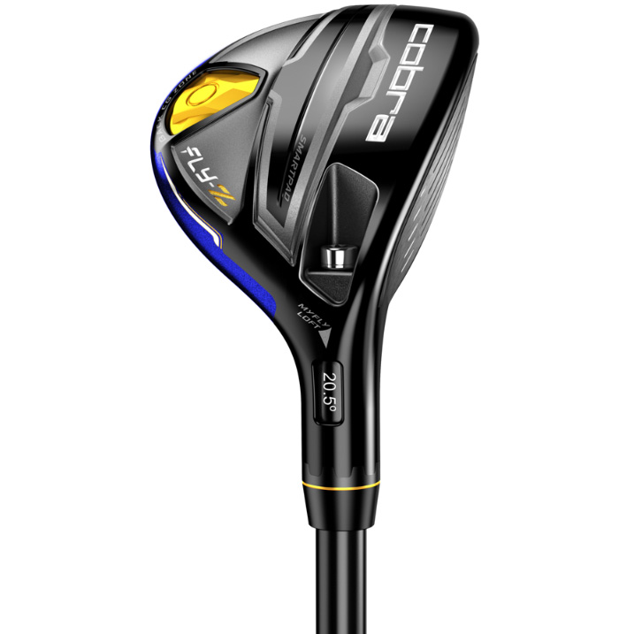 Cobra Fly-Z Hybrid - BlueFeaturing a low, back CG placement, the Fly-Z Fairways and Hybrids are designed for forgiveness and deliver the optimum combination of a low center of gravity and higher ball speed. This position combined with the new Speed Channel Face provides even more ball speed and greater distance on off-center hits. The Fly-Z Fairways feature a high strength steel insert that allows for a larger, thinner face, which enables more face flex for faster ball speeds, longer distances and higher trajectory.