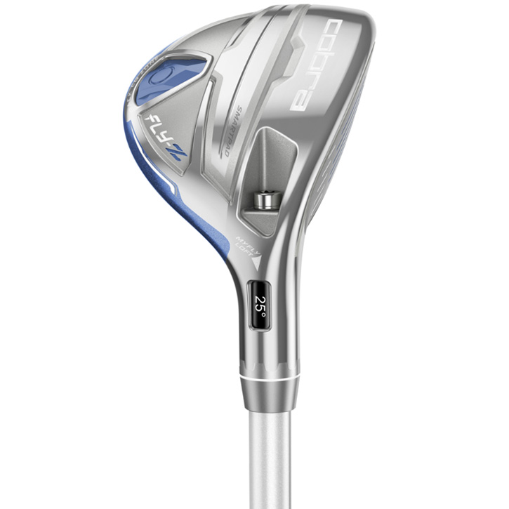 Cobra Fly-Z Hybrid - Womens UltramarineFeaturing a low, back CG placement, the Fly-Z Hybrids are designed for forgiveness and deliver the optimum combination of a low center of gravity and higher ball speed. This position combined with the new Speed Channel Face provides even more ball speed and greater distance on off-center hits. The Fly-Z Fairways feature a high strength steel insert that allows for a larger, thinner face, which enables more face flex for faster ball speeds, longer distances and higher trajectory.