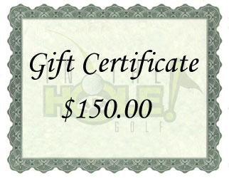 IN THE HOLE! Golf $150 Gift Certificate The perfect gift for any golfer! Gift Certificate can be redeemed online or over the phone. You can have the gift certificate emailed to the recipient or you can have it emailed to your own email address, print it out, and then present it yourself. If you have any questions, or would like to order by phone, please call us Toll Free at 888-733-8383. We look forward to hearing from you! |