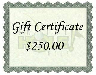IN THE HOLE! Golf $250 Gift Certificate The perfect gift for any golfer! Gift Certificate can be redeemed online or over the phone. You can have the gift certificate emailed to the recipient or you can have it emailed to your own email address, print it out, and then present it yourself. If you have any questions, or would like to order by phone, please call us Toll Free at 888-733-8383. We look forward to hearing from you! |
