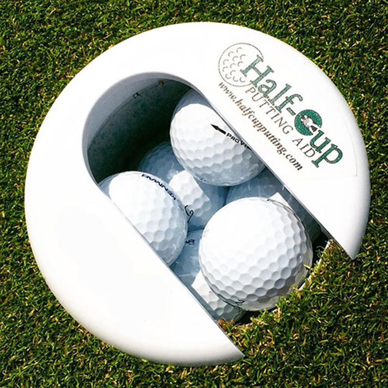 The new Half-Cup Golf Putting Aid is designed to reduce the golf hole by more than half its original size, creating a two-inch slotted target to use while practicing mid and short-range putts.
