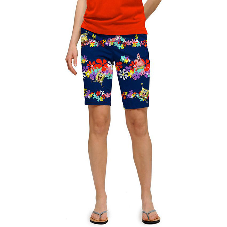 Loudmouth Golf Womens Shorts - Sponge Bob Square Pants NavyLoudmouth Golf bermuda shorts are fun! A cotton-spandex blend, our bermuda shorts are cute, stylish and flattering. Perfect for a round of golf or a day with the girls.