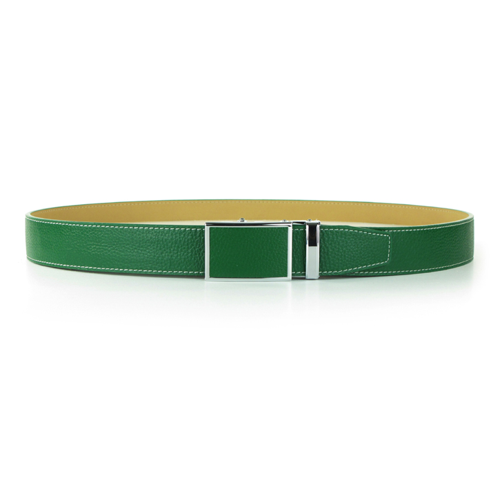 NexBelt Colour Series Belt - Dublin Green Green textured strap with white stitching and chrome buckle with matching leather. Face flips down to reveal hidden markerOur line of unisex colored belts are sure to match any outfits you may have. The deeply textured belts with contrast white stitching are a bold statement of your golf game. You can wear it loud and proud or as subtle touch to accent an outfit. Either way you can’t go wrong. Buckle size 1 5/8” x 2 5/16” – belt strap width is 1 7/16”
