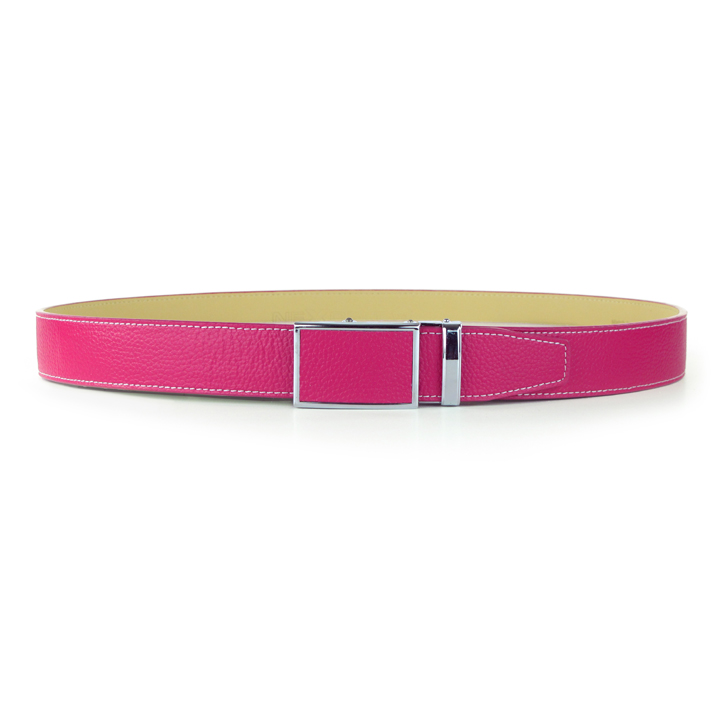 NexBelt Colour Series Belt - Power Pink Pink textured strap with white stitching and chrome buckle with matching leather. Face flips down to reveal hidden markerOur line of unisex colored belts are sure to match any outfits you may have. The deeply textured belts with contrast white stitching are a bold statement of your golf game. You can wear it loud and proud or as subtle touch to accent an outfit. Either way you can’t go wrong. Buckle size 1 5/8” x 2 5/16” – belt strap width is 1 7/16”
