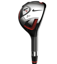 "Nike Victory Red Hybrid To create a product a product that meets the specific needs of the best players in the world, we adjusted the face angle and shifted the center of gravity to optimize workability and distance. Features • Split Compression Channel - Optimizes 455 ultra-thin face with body compression to deliver faster ball speeds equaling longer shots. • Tour inspired design and physics - Open face angle and proper center of gravity location delivers performance for the best players in the world. • 455 Ultra thin face - Thinner face combined with spit compression channel technology delivers hotter response and longer shots. Specs CLUB Loft LIE LENGTH SWING WEIGHT 1 15 deg 58 deg 41.5 in D2 2 18 deg 58 deg 41.0 in D2 3 21 deg 59 deg 40.5 in D2 4 24 deg 60 deg 40.0 in D2" |