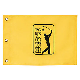 19.5" x 13" polyester pin flag embroidered with PGA TOUR trademark logo.