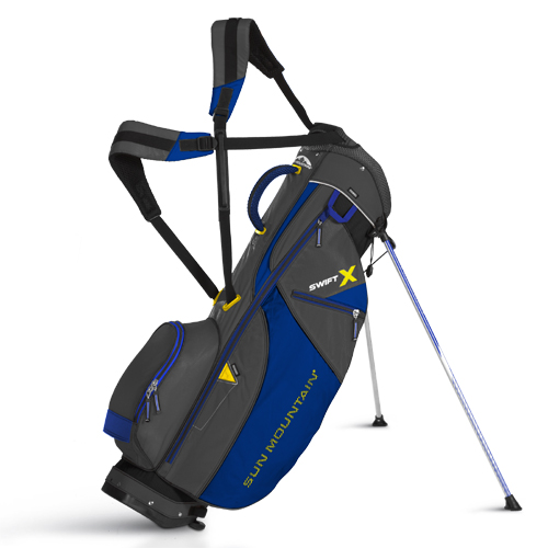 Sun Mountain 2013 Swift X Stand Bag A compact, lightweight bag for the golfer who walks a majority of the time, the Swift X uses the Dual X-Strap System which provides a balanced, easy carry. New for 2013 is the three-way divided top with full-length dividers.Would you like your Sun Mountain H2No embroidered with your name? Click Here for details