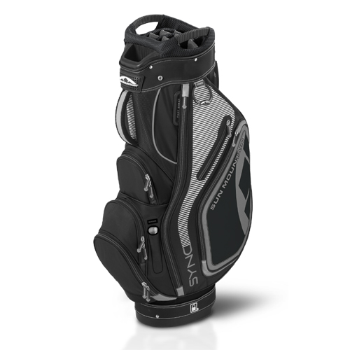 Sun Mountain 2013 Sync Cart Bag The Sync was designed for use on push carts. Sun Mountain started with a top and bottom designed to nest in the upper and lower bag wraps of Sun Mountain push carts. Then they molded the bottom so it fits over the lower bag rest of the Speed Cart and Micro-Cart Series carts, minimizing side-to-side movement.