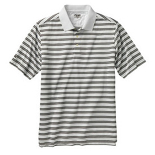 Classic 3 color stripe with texture and jersey. PING embroidery on right sleeve and Mr. PING tab on them.