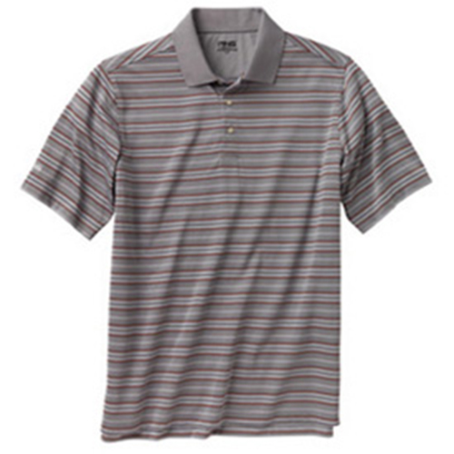 Subtle textured multi stripe shirt. PING embroidery on right sleeve and Mr. PING tab on hem.