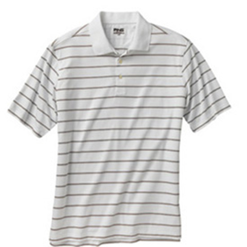 Ping Grain Golf Shirt Dress stripe with a vertical drop needle stitch. PING embroidery on right sleeve and Mr. PING tab on hem.