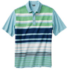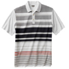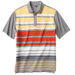 Ping Bunker Golf Shirt Multi stripe front panel sublimation. PING heat seal on left sleeve and Mr. PING heat seal on back neck.