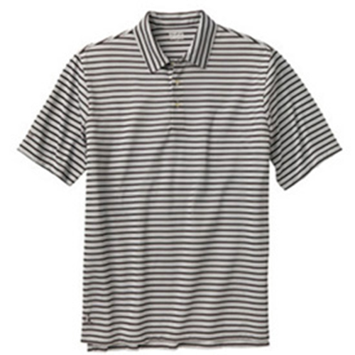 Ping Lights Out Golf Shirt Self collar polo with multi color stripe on white ground. PING embroidery on right sleeve and Mr. PING embroidery on hem.