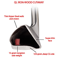 The QL has the deepest CG we've ever created. Unlike past Tour Edge Iron-Woods, the QL has a 15-gram tungsten sole weight. You'll hit higher, longer and more accurate shots because this fixed weight creates a lower CG and a higher moment of inertia (the club's ability to resist twisting).  In addition to the tungsten sole weight, the QL's thin Hyper-Steel walls allow more weight to be placed in the sole. The result is a 120-gram sole that lowers and deepens the CG position. The super-thin Hyper-Steel face makes the QL one of the hottest clubs you'll ever hit. In fact, you'll gain an extra 10 yards over your current irons.