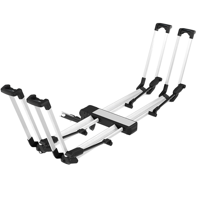 Premium aluminum platform bike rack is fully lockable, easy to use, and holds bikes without frame contact.