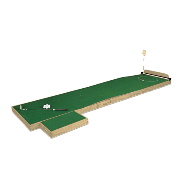 MaintenanceAlthough The ONLY Green is extremely sturdy, we recommend you treat it as you would any fine piece of furniture. When there are breaks stations set, walk around the green, not on it. When not in use, set all break stations to flat. The putting surface should be brushed or vacuumed regularly and the wood dusted and wiped with a damp cloth or furniture polish occasionally. If the putting surface gets soiled or stained, remove the surface and have it cleaned by a professional. WarrantyThe ONLY Green™ is warranted for one year against defects in materials and workmanship. With reasonable care it will last a lifetime. How it WorksContained within the structure of The ONLY Green™ is a trouble free mechanism which enables you to set four different elevations of break into the green at each of 2 to 16 break stations, depending on the model you choose. The ends of the greens may also be elevated for uphill and downhill putts. This very simple procedure takes only a few seconds and can be done by hand or from a standing position with any cavity back putter. Simply raise the knob in the vertical slot while sliding the other adjustment knob to the desired A through D break elevation, D being the highest elevation. The cup is regulation, and the green speed was developed with input from PGA Professionals and instructors who predominantly recommended a true, tournament speed green. Our proprietary Dream Green™ putting surface comes in speeds ranging from 9 - 12.5 on the stimp meter. The Platform GameThe ONLY Green copyrighted scoring system enables you and up to 7 friends to play a 9-hole par 36 or an 18-hole, par 72 putting course with different length putts and contour variations facing you on each hole. Scoring possibilities can range from double eagle to triple bogey. In addition to the course layout and scorecards provided, you can design other courses yourself. The course layouts use the entire putting surface, are great for all kinds of venues and create hours of fun. FAQ