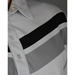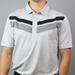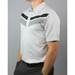 4-button placket, contrast cut/sew stripes across chest and TM script print below back neck