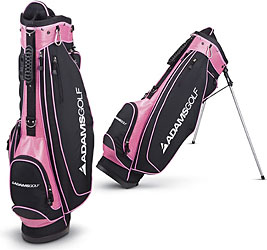 Adams Ladies Stand Bag Features • Lightweight 6-pocket stand bag • 9-inch eight-way divider top • Izzo dual strap • Padded lumbar support • Non-slip foot pads • Fashion-forward design featuring Greek key accents |