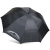 The Sun Mountain auto-operation, double-canopy umbrella is perfect for playing golf in the rain or sun. The Silver umbrella is UPF-rated 60+ and the black is rated 30+. The rubber-covered, slip-resistant handle fits perfectly in the umbrella holder of Sun Mountain carts.