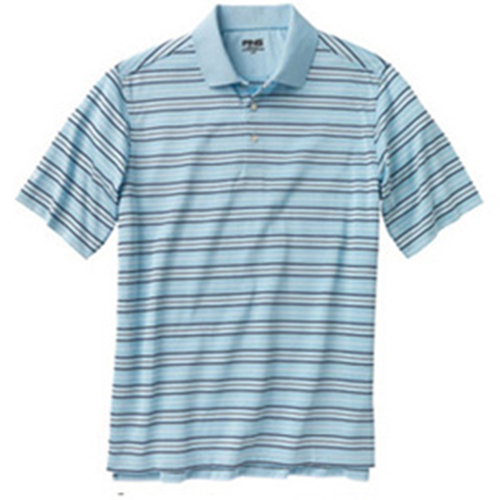 Subtle textured multi stripe shirt. PING embroidery on right sleeve and Mr. PING tab on hem.