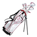 2013 Tour Edge Ladies Edge Complete Golf Set Whether it's the 19-piece full set or the 7-piece starter set, lady edge technology is ready to deliver right out of the box! The Lady Edge high-lofted 460cc driver is designed for superior distance and accuracy. The low-profile stainless steel fairway woods provide a super low center of gravity for higher flying wood shots, and the easy-to-hit stainless steel hybrids deliver maximum forgiveness on the long iron shots. The oversized stainless steel irons incorporate an undercut cavity design which moves the center of gravity back and away from the face while allowing for additional weight to be moved to the heel and toe of the iron. The result is higher, longer, more forgiving iron shots from anywhere on the face. Add a high-MOI mallet-style putter and a deluxe cart bag, and the Lady Edge set is ready to elevate your game!