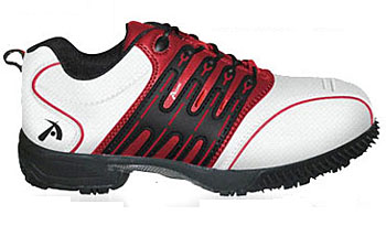 "Brisole Regal Golf Shoes Brisole Technology has been designed into the sole to assist the player in removing lightweight debris, grass and mud from the club face of your irons or other clubs when necessary. Perfect for use when away from your cart and while in play on the course or on the driving range when multiple shots are occurring requiring a quick light cleaning. Each person will find the most effective way to utilize the bristles Features • Upper: Embossed Textured Leather • Outsole: Rubber/Phylon • Comfort: Premium Gel Comfort Insole • Waterproofing: 1 year Enhanced • Cleats: Q-loc Stinger • Dintex: Inner Comfort Liner How to: Option 1: When in your shot stance after a practice shot, to clean your club-face simply: Open the club face and position it at the side of your foot beside the bristles on your shoe. Simply raise the toe of your foot slightly and push the club-face against the angled bristles. Using motion, Slowly slide the club-face up and back against the bristles to remove the debris. Repeat this step if needed until debris is removed to satisfaction. Practice will help create the most effective use of Brisole Technology because each player is different and will discover there are many ways to use the bristles in their own style. Option 2: Put your club-face on the ground face-open in stationary position as shown. Take your foot, raise and tilt bristles toward the club face. Using the bristles, brush off debris until debris is removed using forward, up and down motion with foot. Brisole Technology is designed for quick and lightweight cleaning only. It is not meant for deep cleaning the grooves of the club face, only a means to clear debris so that a shot can be performed unabated while on course or at the range when a towel or brush is not available." |