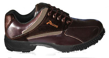 "Brisole Tradition Golf Shoes Brisole Technology has been designed into the sole to assist the player in removing lightweight debris, grass and mud from the club face of your irons or other clubs when necessary. Perfect for use when away from your cart and while in play on the course or on the driving range when multiple shots are occurring requiring a quick light cleaning. Each person will find the most effective way to utilize the bristles Features • Upper: Smooth Leather w/Exotic Saddle • Outsole: Rubber/Phylon • Comfort: Premium Gel Comfort Insole • Waterproofing: 1 year Enhanced • Cleats: Q-loc Stinger • Dintex: Inner Comfort Liner How to: Option 1: When in your shot stance after a practice shot, to clean your club-face simply: Open the club face and position it at the side of your foot beside the bristles on your shoe. Simply raise the toe of your foot slightly and push the club-face against the angled bristles. Using motion, Slowly slide the club-face up and back against the bristles to remove the debris. Repeat this step if needed until debris is removed to satisfaction. Practice will help create the most effective use of Brisole Technology because each player is different and will discover there are many ways to use the bristles in their own style. Option 2: Put your club-face on the ground face-open in stationary position as shown. Take your foot, raise and tilt bristles toward the club face. Using the bristles, brush off debris until debris is removed using forward, up and down motion with foot. Brisole Technology is designed for quick and lightweight cleaning only. It is not meant for deep cleaning the grooves of the club face, only a means to clear debris so that a shot can be performed unabated while on course or at the range when a towel or brush is not available." |