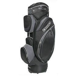2011 Ogio Kingpin Cart Bag With the Ogio Kingpin Cart Bag, Ogio strikes again with one of its legendary “why didn’t someone think of this before” performance features. Beneath the unassuming Ogio Kingpin cart bag hides the secret to its genius: transformer-like pockets. The Ogio Kingpin Cart Bag has two generously sized pockets which sit on the bag’s top " ideally positioned for easy access … until the cart strap comes into play. But wait! Just flip up the pockets on each side, slide the strap around the bag, and pop the pockets back into place. Bag is secure; pockets are still accessible. And the crowd goes wild.