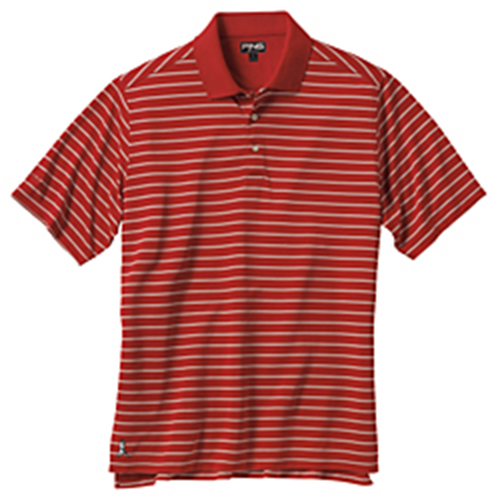 Ping Fensome Polo - Red A timeless striped version of our classic Baby Pique polo "The Albatross". PING embroidery on right sleeve and Mr. Ping at hem. P3 Fabric Technology. 100% Performance Polyester. |