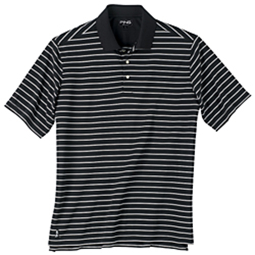 Ping Fensome Polo - Black A timeless striped version of our classic Baby Pique polo "The Albatross". PING embroidery on right sleeve and Mr. Ping at hem. P3 Fabric Technology. 100% Performance Polyester. |