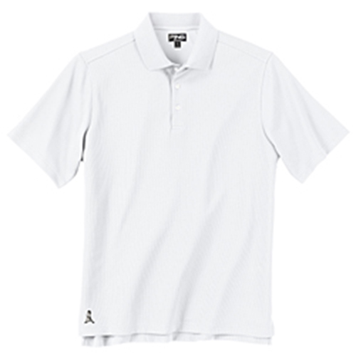 Ping Ace Polo - White Classic style polo with a vertical texture. Tonal PING embroidery on right sleeve and Mr. Ping at hem. P3 Fabric Technology. 100% Performance Polyester. |