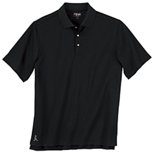 Ping Ace Polo - Black Classic style polo with a vertical texture. Tonal PING embroidery on right sleeve and Mr. Ping at hem. P3 Fabric Technology. 100% Performance Polyester. |