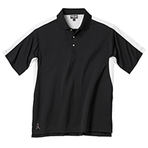 Ping Blade Polo - Black Color blocking polo with mesh ventilation at the back neck and underarms for more breathability. PING embroidery on right sleeve and Mr. Ping at hem. P3 Fabric Technology. 100% Performance Polyester. |