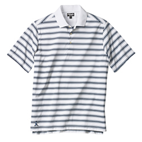 Ping Brassie Polo - White This performance polo keeps you looking and feeling cool with its multi-striped jersey. PING embroidery on right sleeve and Mr. Ping at hem. P3 Fabric Technology. 100% Performance Polyester. |