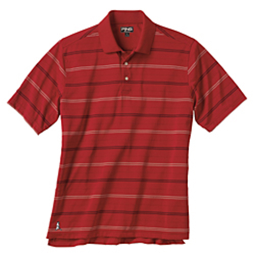 Ping Marshal Polo - Red Classically styled polo in a bold 3 color stripe with a subtle texture. PING embroidery on right sleeve and Mr. Ping at hem. P3 Fabric Technology. 100% Performance Polyester. |