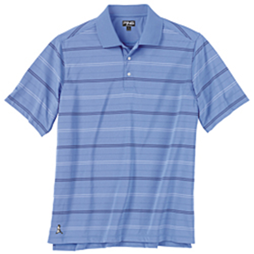 Ping Marshal Polo - Lagoon Classically styled polo in a bold 3 color stripe with a subtle texture. PING embroidery on right sleeve and Mr. Ping at hem. P3 Fabric Technology. 100% Performance Polyester. |