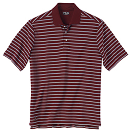 Ping Sandbagger Polo - Burgundy This shirt has the hand of mercerized cotton with the performance of moisture wicking polyester. PING embroidery on right sleeve and Mr. Ping at hem. P3 Fabric Technology. 70% mercerized cotton and 30% Performance Polyester. |