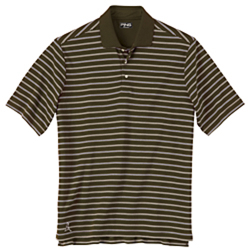 Ping Sandbagger Polo - Loden This shirt has the hand of mercerized cotton with the performance of moisture wicking polyester. PING embroidery on right sleeve and Mr. Ping at hem. P3 Fabric Technology. 70% mercerized cotton and 30% Performance Polyester. |