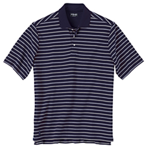 Ping Sandbagger Polo - Navy This shirt has the hand of mercerized cotton with the performance of moisture wicking polyester. PING embroidery on right sleeve and Mr. Ping at hem. P3 Fabric Technology. 70% mercerized cotton and 30% Performance Polyester. |