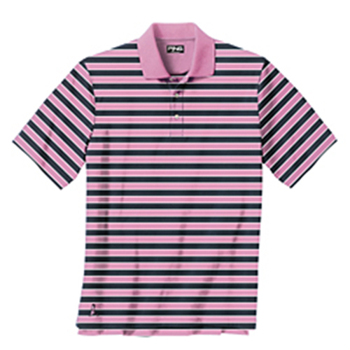 Ping Looper Polo - Pink This shirt has the hand of mercerized cotton with the performance of moisture wicking polyester. PING embroidery on right sleeve and Mr. Ping at hem. P3 Fabric Technology. 70% mercerized cotton and 30% Performance Polyester. |